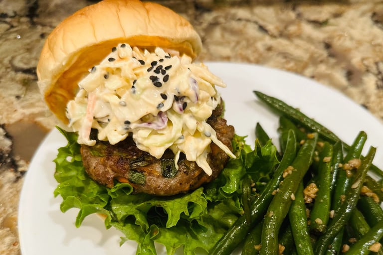 Do you have burgers on the mind? We'll show you 2 delicious and unique applications, to make you rethink the ho-hum burger! Seafood lovers delight in our spicy salmon "burger", encrusted in seasoned bread crumbs and topped with vine ripened tomatoes & a spicy jalapeno garlic aioli. If it's the flavors of the far East that you're craving, check out our Shogun burger. This is an Asian inspired ground pork patty infused with the flavors of Tokyo. This supple patty has chopped green scallions, minced fresh ginger, garlic, then topped with a creamy Siracha sesame coleslaw, guaranteed to satisfy.