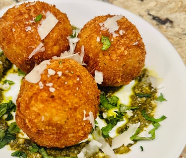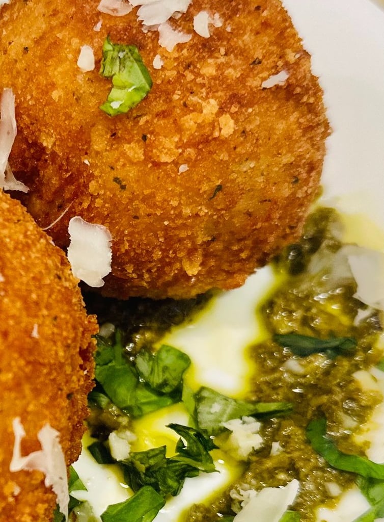 Did you know that arancini was founded in Sicily and is a common street food that is made of risotto which is rolled into a ball, stuffed, breaded, and gently fried? Sounds to good to be true, you better believe it's blissful. What makes our arancini better is the addition of white wine and freshly grated parmesan cheese to the risotto, adding to the creamy complexity of the dish.