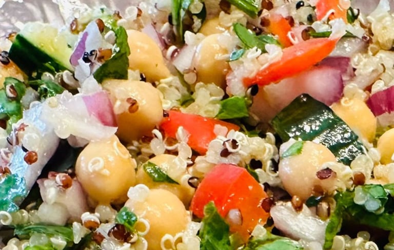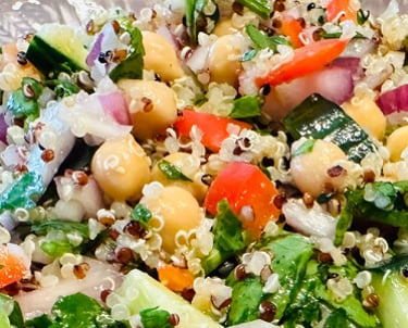 This delicious quinoa bowl not only packs a large does of flavor but brings a rainbow of vitamins! Loaded with fresh herbs and citrus flavors, this is a meal that comes together easily, perfect for family picnics or weekday lunches.