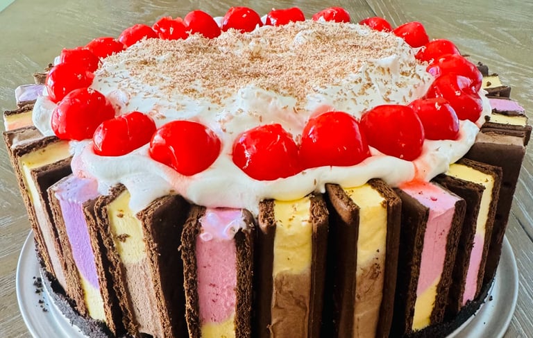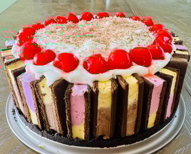 Don't spend $50 dollars on that custom ice-cream cake, you can make one on your own, for a fraction of that price! Break this ice-cream sundae cake out as a summer time treat or for your next birthday party! For the adults, pair with a Rose champagne to mark the celebration or a vanilla milk steamer for the kiddos.