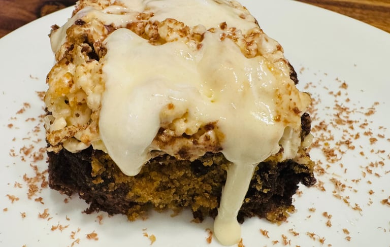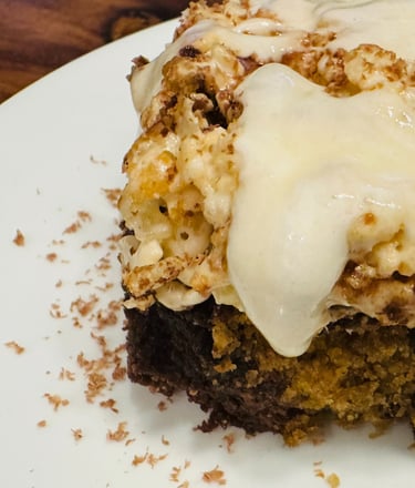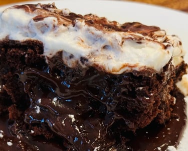 This rich chocolate devils food cake is infused with a sweetened condense cream and a Ghirardelli chocolate filling. Topped with a marshmallow fluff and homemade whipped cream icing, this one is for the chocolate lover in your life! Pair this with a full bodied Pinot Noir, for an exquisite ending to a meal.