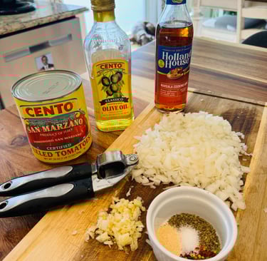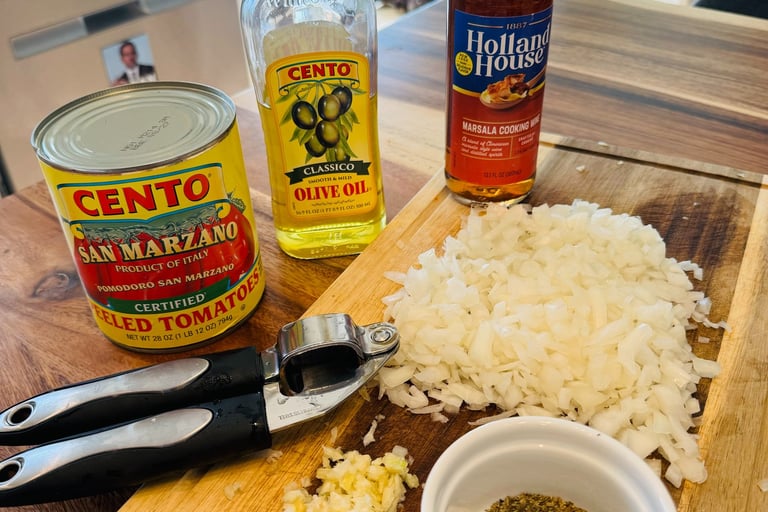 With this marinara sauce, the authentic San Marzano tomatoes lend a vibrant, fresh taste that serves as the perfect backdrop for the complex notes of the Marsala wine. The wine infuses the sauce with a subtle sweetness and a hint of nuttiness, creating a harmonious balance with the acidity of the tomatoes. To further enhance the flavor profile, we incorporate finely chopped aromatics such as onion and garlic. These ingredients add a savory depth to the sauce, their pungent notes mellowing out during the cooking process to leave behind a gentle, aromatic whisper that complements the other flavors beautifully.
