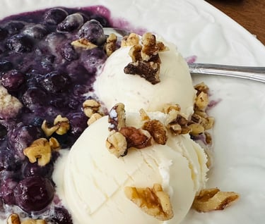 Cobblers were first introduced by the British American colonies. Although there are various versions, this blueberry cobbler is reminiscent of a brisk fall morning. A perfectly balanced and warm dessert, served with a vanilla bean ice-cream gives this dish a remarkable blueberries and cream vibe.