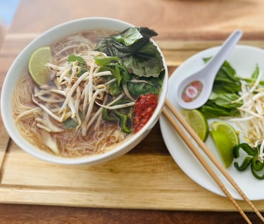 Our Vietnamese Beef Pho is a delicious dish made with rice noodles, tender beef, and a flavorful broth. This comforting bowl of noodles is traditionally topped with fresh basil, jalapeno slices, and crisp bean sprouts. The combination of these ingredients adds a refreshing and aromatic touch to the dish you will love any day of the week!