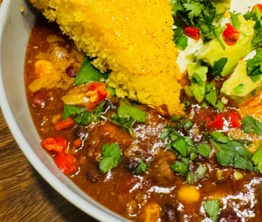 This chili is not only packed with flavor but brings the heat! With warm spices of cumin and chili, this dish is guaranteed to keep you warm on the coldest of winter days!