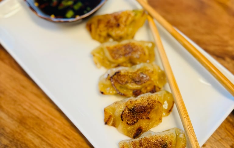 No need to grab a bag of Japanese dumplings from the freezer section at your local grocery store. You can make these easily at home, storing plenty of leftovers in the freezer! These dumplings are filled with a savory mixture of ground pork, ginger, garlic, green onion, and minced cabbage, pan-fried to a crispy brown. Served with a sweet chili pepper soy sauce.